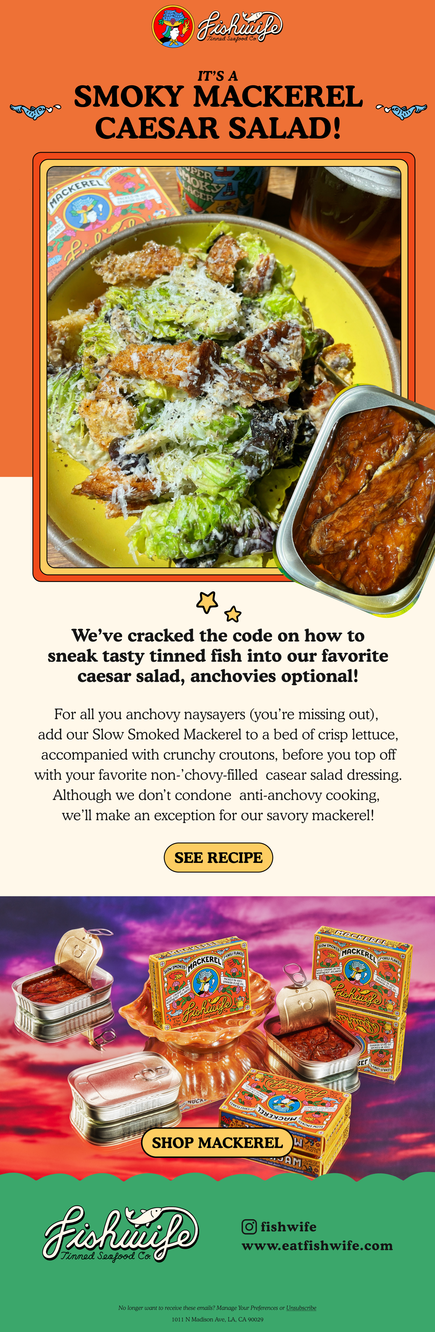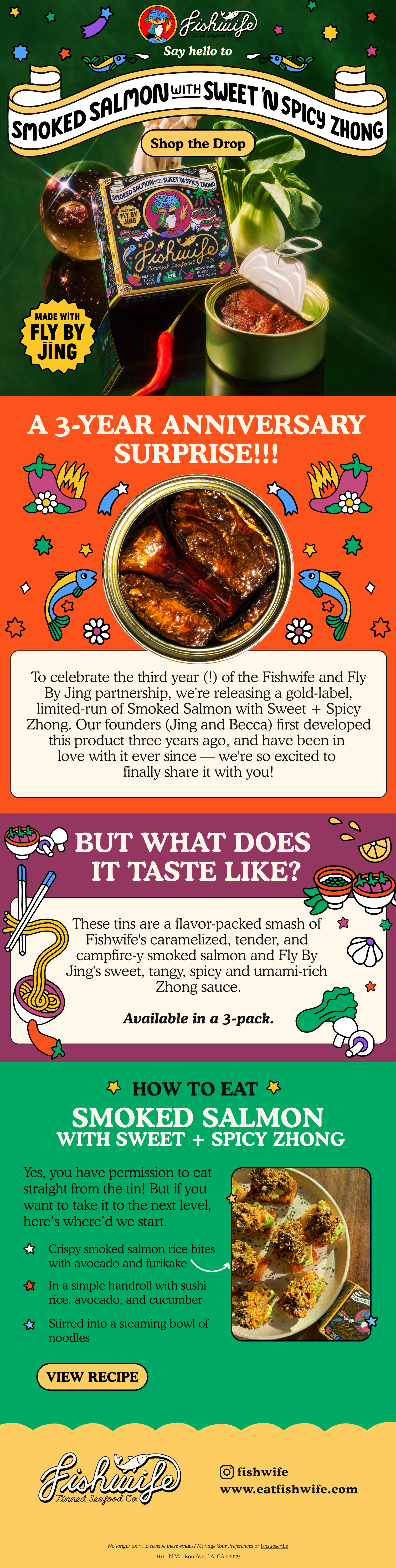 Partnering with Fishwife, a brand synonymous with bold flavors and vibrant experiences, I've had the privilege of crafting captivating email designs that mirror the essence of their identity. Embracing their graphic-centric approach, each email serves as a visual feast, enticing over 90,000 recipients with bold imagery and dynamic layouts.